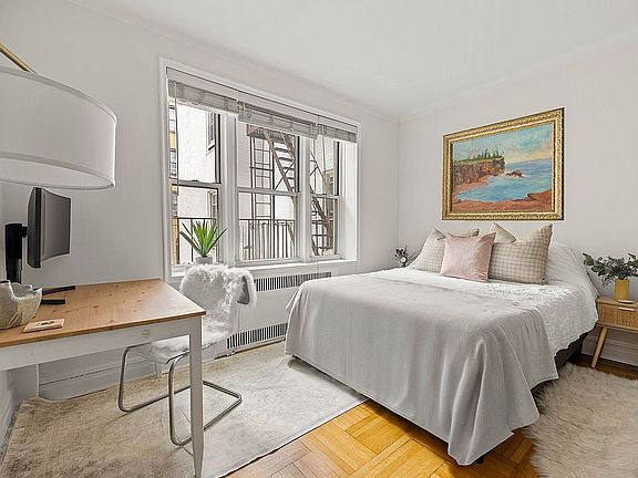 Storage is a standout feature of this apartment, with an oversized walk-in closet that once served as a dressing room, a deep coat closet with double hanging space, and additional overhead shelving. Please see the alternative floor plan to easily create a home office alcove. A storage unit can be transferred with the apartment.