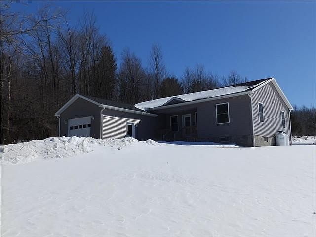 Comfortable and economical country ranch Construction began on this comfortable and economical country ranch style home in 2007 and was completed in 2008. The eat-in kitchen with oak cabinetry is open to the living room creating a feeling of spaciousness. The master bedroom features a walk-in closet and a half bath with laundry hookups. Outside features include a covered porch on the front of the home, detached one car garage and a spacious yard with plenty of area for play and a garden too.The drilled well is located to the left of the home. The 1000 gallon concrete septic is located in back of the home. 200 amp CB panel. Average monthly electric is approx. $95-$105. Home is heated by a Comfort Aire FA propane furnace. Heating costs for a one year period is $1057.52. Time Warner cable TV and internet are available. Just a short drive to Canton, Potsdam or Ogdensburg. Wonderful home for many types of buyers!!