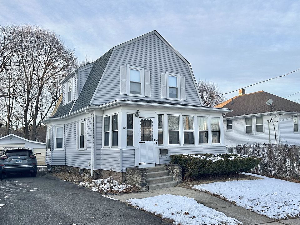Back on Market (buyer backed out due to personal health reasons)Convenient Location for this Classic New England Dutch Colonial with lots of potential! Add some TLC , fresh paint,removal of some wallpaper,pull up carpeting(wood floors under carpet) and add some of your remodeling "updates" and you will have a very comfortable charming home.Has Newer roof/siding and hot water heater! Has 2/3 bedrooms(town card says 2 but family used as 3 Br ) ,spacious front sun porch ,2 car detached garage, Walk to beautifully refurbished Rockwell Park,with walking trails and year round activities! Easy access to Downtown...great for first time homebuyers /remodelers also..(see MLS 24055670 63 Sherman St neighborhood "comparable" sold in December for decorating refurbishing ideas "almost identical layout")