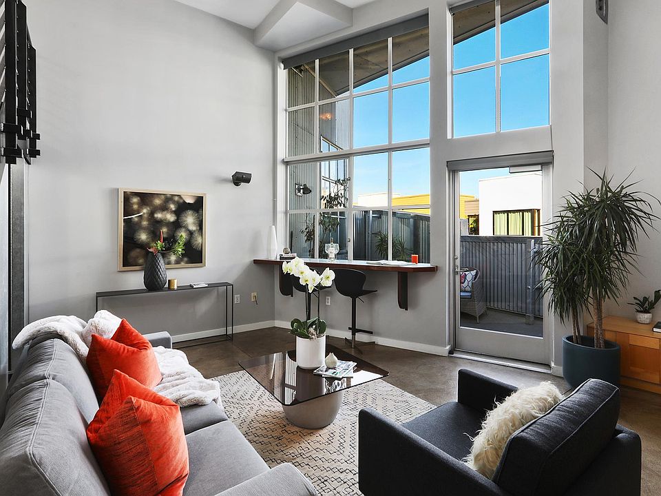 Welcome to a very unique two level corner 2BD/2BA live/work loft with a huge private patio and views of downtown right off the living room. This urban conversion loft with concrete finishes and tons of natural lighting in the historic Mullen Building offers a very cozy floor plan. Once you enter this corner unit, you are welcomed home with a short hallway that opens up to the kitchen/dining/living room area's huge windows. The living space extends onto the patio for indoor/outdoor living. A rare find, the patio offers privacy and partial downtown views, perfect for outdoor dining or wining and container gardening. Additional features are the conveniently built-in dining sitting area; a built-in desk area right by a large window facing the patio and views of downtown; built-in closet organizers in the second bedroom; a washer and dryer in the unit; concrete floors with radiant heating; a side entrance to the tree-lined street; and one-car parking in the building