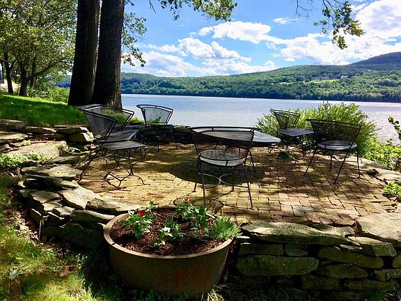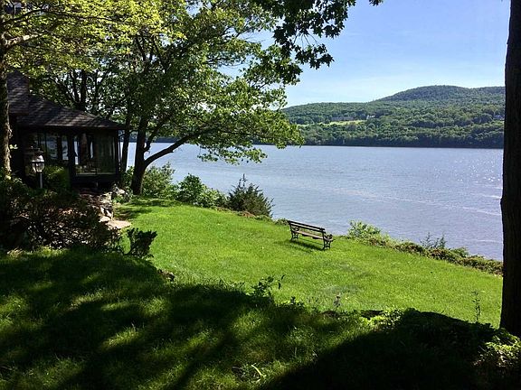 Tucked between rock outcroppings, high on the bluff overlooking the Hudson River, this home is sited to take full advantage of the sweeping, stunning views of the river. The exposed beams, chevron brick flooring, built-in cabinets, archways, and wood mantle over the fireplace create a warm and welcoming feeling. The many window and glass doors are designed to allow the majesty of the Hudson River to seemingly be part of the flow of the home. In addition to this lovely home, there is a legal one-bedroom rental with the same gorgeous views, and it is totally separate from the house. Currently occupied by a tenant, this space could be used as a caretaker's apartment, a rental, or just a lovely guest house. Conveniently located to Rogers Point Boating Association, just a 1/2 mile away, and dining at the Culinary Institute of America, just four miles away. Both the Vanderbilt Mansion and Franklin Roosevelt's home are less than two miles from the house. Great location with easy access to all the wonders of the Hudson Valley, that is, of course, if you ever want to leave this idyllic Hudson River home. Imagine how lovely it would be to work from home from this gorgeous location. For a virtual tour, please visit our Paula Redmond Real Estate YouTube channel.