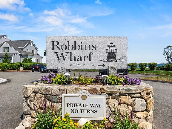 Oceanfront luxury condo located in Robbins Wharf with direct easy access to water's edge & sandy beach. Panoramic views of Plymouth harbour, Long Beach & Bug Light. Kayak from your property to inner harbour or the beach. This custom home features ~ 1st floor office with private walk out patio, den / guest room with double closet, full bath w/ shower. The open staircase brings you to the light & bright 2nd level which boasts walls of windows to enjoy the view, Gourmet chef's kitchen with spacious center island & custom cabinets, open dining room, Great room with corner gas fireplace, private balcony, hardwood floors, Owners bedroom suite, guest bedroom w/full bath & laundry. 3 parking spaces. The open floorplan is perfect for entertaining. The 4 acre 26 unit beachfront complex abuts 18 acres of conservation land & The Seaside Grace Trail ~ walking/ bike trails to Waterfront & Downtown for shopping & fine dining, commuter rail mins away, Vacation style living at its best