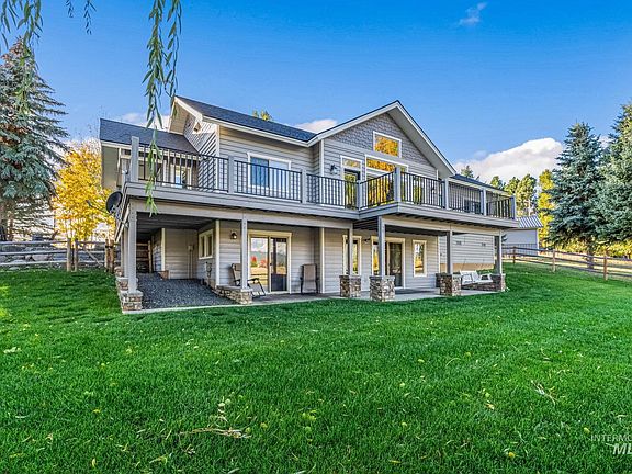 Full turnkey custom 4BD/3.5BA 3,351 sq ft estate on 3.47 acres with breathtaking mountain views and no HOA! Newly installed hardscape features a paver patio with firepit, basalt fountain, dry creek bed, waterfall, large deck and private pond for serene outdoor living. Attached 2-car garage plus large detached finished 35'x35' shop with 12’x12’ RV door and income producing guesthouse/apartment with additional garage. Interior offers radiant floor heat, granite countertops, wood flooring, stainless steel appliances, and quality finishes throughout. A rare combination of space, views, and craftsmanship just minutes from town. This is truly a one-of-a-kind property that you have to see to believe!