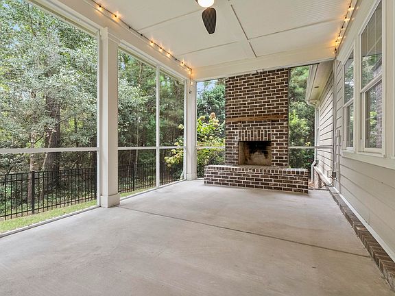 Custom brick outdoor fireplaceGorgeous front porchPrivate wooded lotCustom hand-painted muralQuiet cul-de-sacCustom built-insUpgraded finishes