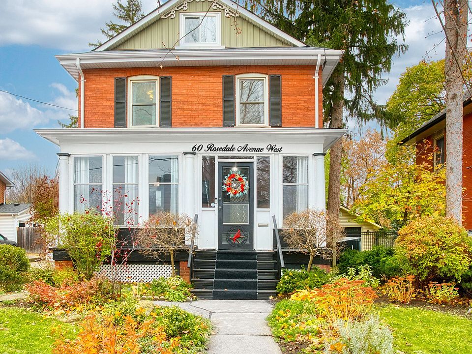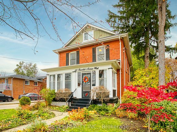 Welcome to 60 Rosedale Avenue West, a beautifully preserved century home in one of Brampton's most storied neighbourhoods. Set among mature trees and heritage streets, this 2.5-storey red-brick classic blends early 1900s charm with over a decade of meaningful, high-quality updates. From the moment you step onto the enclosed sunporch, the home's warmth & gentle energy are unmistakable. Inside, original wood trim, high ceilings, pocket doors, & rich hardwood floors create an inviting sense of history. The main level features a bright living room with a feature fireplace, a spacious dining room with original millwork. The refreshed kitchen has upgraded appliances, countertops & a separate coffee bar. A rare main-floor bedroom with an adjacent updated bathroom adds valuable flexibility for guests, multi-gen living or a home office. Upstairs, the 2nd level offers four comfortable bedrooms, each with it's own personality. The standout, however is the re-imagined primary suite - a serene retreat with vaulted ceilings, beautiful ensuite, generous storage & a private balcony overlooking the deep, tree-lined backyard. The finished attic expands the living space with new flooring, oversized updated windows & endless potential for a studio, playroom, office or cozy retreat. Outside, the landscaped yard is private and welcoming, complemented by a multi-tiered deck, mudroom entry, and a detached garage with recent roof and siding upgrades. The home has benefited from extensive improvements, including major systems, windows, bathrooms, flooring, doors, garage updates, and more-providing outstanding peace of mind. Located steps from downtown Brampton's shops, cafés, theatre, parks, and GO Station, this neighbourhood is experiencing exciting revitalization with improved walkability & community focus. This is a rare chance to own a piece of Brampton's history-beautifully updated, full of character & truly cherished. This home is a must see. Book your showing today!