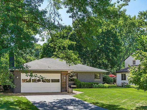 Mid-century ranch with original kitchen cabinets in great shape with modern updates. The open floor plan which features a wall of windows complemented by hard wood floors, fireplace and moldings is absolutely charming. Updated baths on first floor and lower level. The lower level has egress and fireplace waiting to be finished. The out building makes for a perfect she shed, man cave or home office.