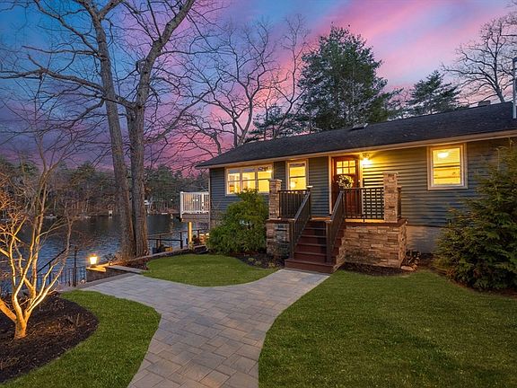 **Open houses cancelled, sellers have accepted an offer.** Prepare to be wowed by this spectacular waterfront home on South Pond, a coveted 70' deep fully recreational lake in the desirable town of Sturbridge. With 100’ of lake frontage, this home boasts an unobstructed view plus an extensive and high end renovation at every turn. There are multiple ways to enjoy the lake with 2 large decks, a patio, and stone sitting area etched into an impressive stone retaining wall! Inside you'll find a designer custom kitchen with premium appliances, granite counters, and custom island. The open floor plan includes an exquisite built-in bookshelf and gas fireplace, eating area, and is adjacent to an overflow entertaining space with a 2nd slider. There is a full bath, porcelain tile floors, and recessed lighting. Upstairs you'll find an incredibly charming sitting area overlooking the lake w/ 2nd deck plus 4 sizable bedrooms and updated full bath. The 2 level garage has a heated/ac finished space.