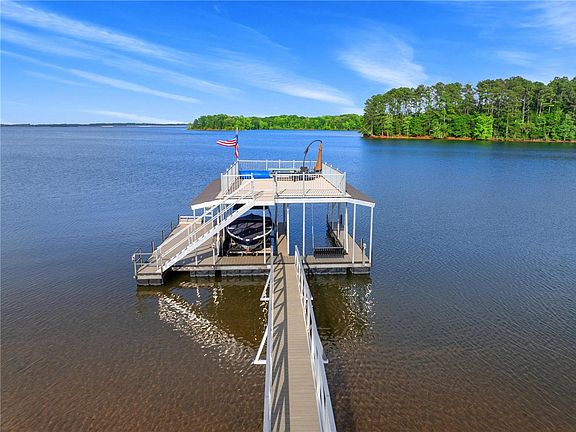 LIVE the ultimate LAKE LIFESTYLE in this meticulously designed and professionally decorated move-in-ready retreat on Lake Hartwell. Nestled on 3.27 acres with 97 feet of prime lake frontage, this home blends MODERN LUXURY with lakeside charm. Enjoy breathtaking BIG WATER VIEWS from the double-decker dock with two slips, perfect for days on the water. Step inside to a stunning kitchen equipped with a gas stove, stainless steel appliances, and expansive countertops - ready for your culinary creations. The OPEN-CONCEPT den and dining area feature soaring ceilings, a cozy gas fireplace, and seamless access to the EXPANSIVE screened-in porch - ideal for ENTERTAINING or RELAXING with a lake view. UNWIND in the primary suite, complete with a soaking tub, double vanity and private screen porch access. Two additional bedrooms offer versatility - one with screen porch access and another with built-in bunk beds that sleep five. Head upstairs to the loft - a perfect space to read, play games, or just take in the view. Downstairs, the fully finished terrace level invites you to ENTERTAIN with a second kitchen, spacious den, and two guest bedrooms, one with a private ensuite. The charming lower patio with a BED SWING and two additional swings is the perfect spot to RELAX and enjoy lakeside evenings. Additional features include a golf cart garage, custom drapes and remote controlled blinds, a generator, a sprinkler system, a speaker system, and a comprehensive alarm system. This house is being sold partially furnished. Boat is for sale separately. Every detail has been thoughtfully curated for EFFORTLESS, SOPHISTICATED lake living. This house is located less than 10 minutes from downtown Hartwell.