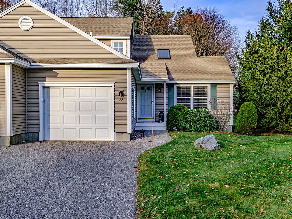 Welcome to 60 Shadagee Road, your dream condo in the heart of Saco! This charming 3-bedroom, two-and-a-half-bathroom residence boasts a seamless blend of comfort and sophistication. Beautiful hardwood floors run throughout the home. An inviting living room space with cathedral ceilings and a cozy gas fireplace greet you as you enter the home. The kitchen is equipped with gas cooking and elegant granite countertops and just steps away you'll find the formal dining room. A first-floor primary bedroom with double closets and an ensuite bathroom, as well as a half bath with laundry complete this floor. Ascend to the sun-filled loft area which overlooks the living room. The second and third bedroom, and full bath provide ample space for guests. The homes full dry basement provides a great deal of storage, and the 1-car garage with direct entry to the home offers security and convenience. Off of the main living area you will find a private side deck and stone paver patio, perfect for entertaining in those warm summer months. This home is a true sanctuary for those seeking both style and functionality.
