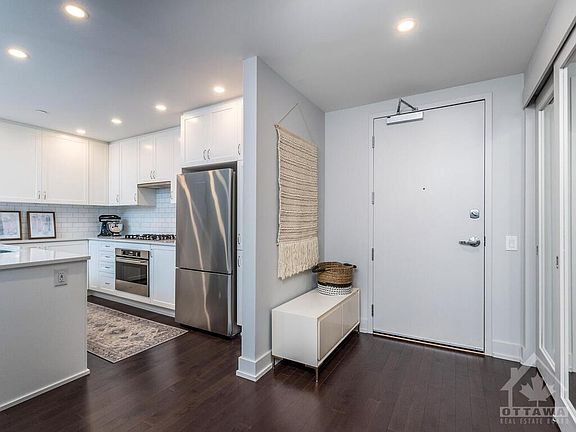 Welcome to Domicile's "The Corners on Main"-The perfect intersection-located in the heart of Old Ottawa East. Steps from the Rideau Canal, Rideau River, minutes to the downtown core, Lansdowne Park, The Glebe-prime location. This gorgeous contemporary unit features:open concept, living, dining room, chef's kitchen, 1 bedroom with ensuite & powder room, large balcony, 1 underground parking space & storage locker. Stylish & tastefully decorated the luxury finishes include: hardwood floors, quartz counters, upgraded appliances, gas cook top & wall oven, double sink, breakfast bar, gorgeous cabinets, custom blinds, powder room & ensuite bathroom/custom vanity. BBQ on your private balcony. Only six of the 1 bedroom units have powder rooms plus ensuite bathroom. Amenities include: rooftop terrace, visitor parking, gym, yoga rm., party rm. and a guest suite. Make this your next address! Recent Status Certificate available, 24 Hour irrevocable on all Offers. Listing agent is related to Seller.