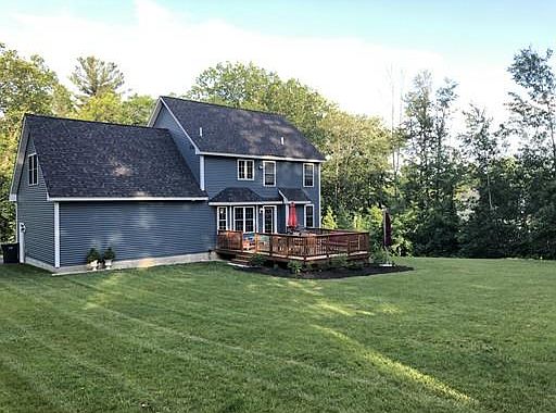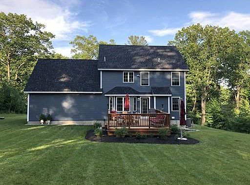 Better than new for this 3 yr young Colonial on over 2 acres in desirable Derry location close to area conveniences and Rockingham Rail Trail! Original owners have added expanded deck, pristine landscaping, play area & a Reeds Ferry shed to compliment level back yard that's perfect for entertaining! Inside a beautiful custom made mudroom seating area with storage and coat rack welcomes you into a bright open-concept kitchen w/ SS appliances, breakfast bar and recessed lights. Gas fireplace highlights the living room. Dining room is accented by crown molding and wall molding. Childrens 1st fl playroom could be used for home office or den. Upstairs you'll find 4 bdrms, full bath & conveniently placed laundry. Spacious MBR has ceiling fan, walk-in closet, gorgeous bath w/double sinks, soaking tub & tiled shower. 3 other bdrms have large closets & ceilings fans as well. Home has hardwood flooring throughout, custom blinds and walk out basement for storage or future expansion.