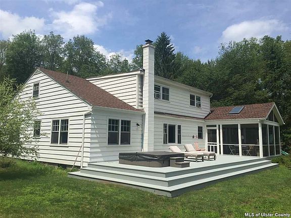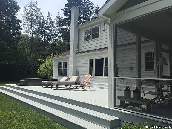 This spacious and bright expanded-cape sits on one of those quiet country roads that people dream about. The house and property were recently remodeled and configured to bring the outside in, and to create comfortable living spaces, large bedrooms, and an indoor/outdoor experience that will make you never want to leave. With the wood-burning fireplace in the living room and the screened porch, deck and hot tub out back, there's a treat for every season. Great eat-in kitchen with butcher-block counters opens to dining room, which then leads to a den/library with many built-ins. There's a first floor bedroom, and three more upstairs, along with a delightful open area, currently used as a kids' playroom, that would also make a great home-office. New bathrooms are exquisite with marble mosaic floors. Heated barn/studio building lends itself to many uses.