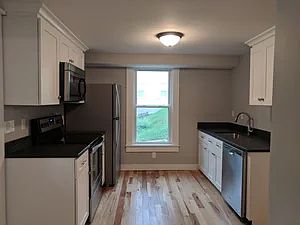 1BR / 1Ba available Dec 15th apartment w/d hookups off-street parking rent period: monthly Designer kitchen in the front of the unit with granite countertops, stainless steel appliances including a dishwasher and shaker style cabinets. A spacious modern bathroom with washer and dryer hookups, tile floor and roomy vanity is located in the center of the unit. Large bedroom with small walk-in closet can be found in the back of the unit. Beautiful hardwood floors run throughout, including the living room, kitchen and bedroom. Cable TV hookups in living room and bedroom. Completely renovated from top to bottom including high-efficiency heating, on-demand hot water, new windows, and new insulation in each unit. Tenant pays own utilities. Heat/hot water runs on propane.