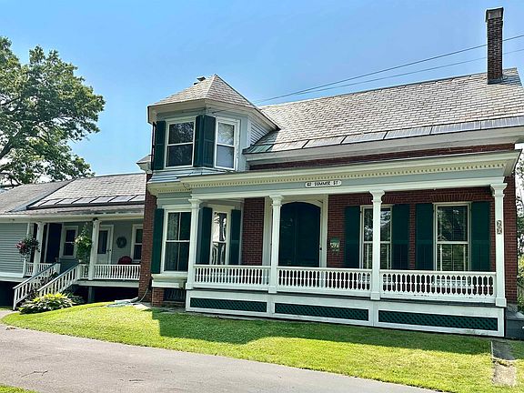 Would you like to live close to downtown Keene? Just off the common on a quiet side street, this well-maintained, mid-19th-century brick New Englander blends antiquity with everyday ease. Two covered porches are yours for relaxing. Read a book, visit with friends or just watch the world go by. Listen to the birds chirp their hellos, and gaze into partially fenced yard with a sweet swing, and where established perennial gardens and flowering trees offer a quiet, leafy retreat. A large attached barn, in excellent condition, could be a delightful woodworker or a maker’s workshop and a second garage space within the barn an additional possibility. Inside, sunlit rooms invite writing or painting in a dedicated studio. The one remaining original tin ceiling floats above hardwood and softwood floors; bull’s-eye moldings, bay windows, arched double doors, and a welcoming fireplace keep history close at hand. The eat-in kitchen—updated with granite counters and a walk-in pantry opens to a lovely dining room with built in cabinets and a lovely bay window. Updated baths and most windows bring modern comfort without losing the home’s soul. A first-floor bedroom (or primary suite) adds flexibility. You will find three bedrooms upstairs, a newly renovated full bath and ample storage space! A nice stroll from your doorstep is our quaint downtown. Convenience, creativity, and comfort in graceful harmony could be yours!