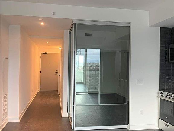 Stunning 2 bedroom, 2 bathroom suite in the vibrant Canary District. Approx. 800 sq ft with soaring 9 ft ceilings and floor to ceiling windows providing abundant natural light. Expansive balcony with unobstructed views, perfect for relaxing or entertaining. Steps to Corktown Commons, Distillery District, cafes and parks. Includes 1 locker. Internet included in rent. A rare opportunity to enjoy modern urban living in one of Torontos most sought after neighbourhoods.