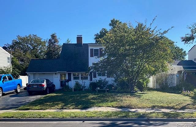 Beautiful Cape style Levitt home nestled on a quiet tree line street. Hicksville school district. Main floor entry into the eat-in kitchen, large open dining and living room with fireplace perfect for large gatherings. Main floor bedroom and updated full bath. Designated laundry room. Sliders to the deck and vinyl fenced backyard. Large driveway with 1.5 car garage with loft storage and entry to backyard from garage. Newly installed tankless hot water/furnace. Second floor has 2 additional bedrooms and a large master with walk-in closet. Additional full bathroom, crawl space storage. Property of 100 x 60.