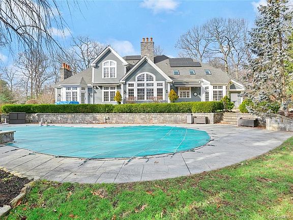 Prepare to be wowed! This spectacular home is sited on a manicured 3.5 acres with specimen plantings and stone walls.There are many outside entertaining areas including multiple patios, fire pit, heated gunite saltwater pool with spa, stone FP and tiki bar. As soon as you enter the 2 story foyer with curved stairway you will notice the unbelievable attention to detail throughout. High ceilings, extensive millwork, HW Flrs with in-lays, wainscoting, and transom windows over doorways. The great room has a 2 story river stone fireplace. The library is paneled with built-ins and coiffured ceiling. The dining room has a wet bar. The recently updated kitchen is light and bright with high end appliances and quartz countertops and a lovely dining area. A sprawling first floor primary suite is a dream with fireplace, sitting area, walk-in closets with built-ins and spa bath with steam shower and jetted tub. There are 4 add. BR's on the 2nd level w/ updated Jack & Jill Bths, an exercise or playroom and large laundry room. To top it all off, theres a finished LL w/ HW Flrs that includes a Rec. room with FP, FR with full wet bar, a climate controlled 1,000+ wine cellar, media room or office, additional laundry, full bath and plenty of storage . Entertaining locations in this home are endless! If youre looking for country living, but with the easy access to highways or trains, then this is your ideal location. This eco-friendly home has geothermal heat, solar panels and a generator.