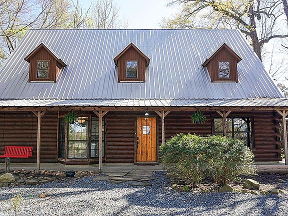 Fantastic Redlick ISD country setting! Just outside Texarkana, this 4 bedroom log home is welcoming to all with its wrap around porch and bay window. Fully updated, this kitchen is like a showroom with gorgeous granite, new appliances & bright lighting and continuous tile downstairs. A laundry room if off the kitchen with a side door exit. Across from the kitchen is a large dining room with front and side views of the pretty tree shaded yard. Into the living room, a wood burning stove will keep you cozy, windows to side and backyard allow plenty of light and the log walls provide a lodge look. A half bath for guests is adjacent. The large master suite has French doors to back patio, walk in closet, tub shower in a private bath. Upstairs we have 3 very spacious bedrooms one with a very nice ensuite bath and closets. The hall bath has a tub shower combo for bedrooms 3 & 4 and large connecting closet. Walking out back the vacation begins! An in ground pool with a fresh new liner are ready for the party. Steps away is a large pool house or game room with windows surrounding and a new tiered deck gives you even more space to entertain or relax under the trees. Come up the circle drive and see this beautiful home for yourself.