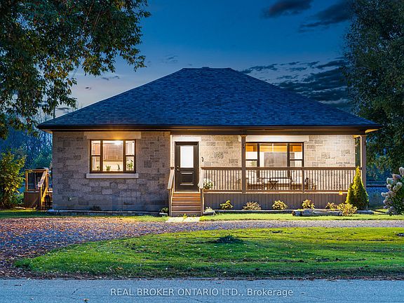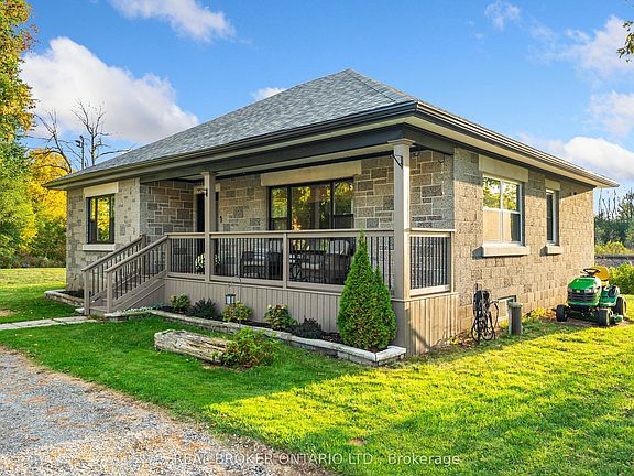 Welcome to 60 Union Street, a beautifully updated bungalow on a picturesque 3/4 acre lot in Smiths Falls. Fully renovated in 2015, this 2-bedroom, 1-bathroom home offers 1155 sq ft of stylish living space surrounded by mature trees, manicured gardens, and raised veggie beds. The eat-in kitchen is the heart of the home with dark cabinetry, stone countertops, tiled flooring, stainless steel appliances, and a chimney-style hoodfan. Oversized windows fill the cozy living room with natural light and provide peaceful views of the serene yard. Both bedrooms are generously sized the primary features a walk-in closet, while the second has a stylish accent wall. The bathroom is well-appointed with a double vanity, stone counters, and ample linen storage. 2021 updates include central air, water treatment, shed & septic system. Enjoy the outdoors with a side deck perfect for BBQs, a charming storage shed, and an inviting fire pit area ideal for gatherings. With no rear neighbours, you'll love the privacy and tranquility this property offers. Plus, the nearby VIA Rail station makes commuting or weekend getaways a breeze all while being minutes from town amenities.