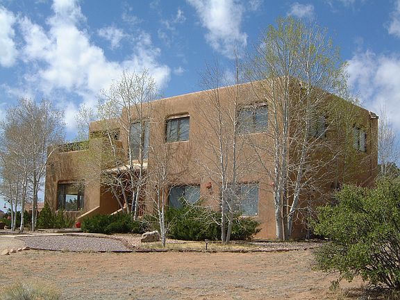 An outstanding horse property, ready for new owners to take the reins. The stylish and modern Southwest-style home is sited on a 10 acre parcel to maximize privacy and is flanked by mature trees. Generous windows capture natural light and endless views. Enjoy Santa Fe's renowned weather, sunsets and night skies from the decks and the portal dining patio, while sitting beside the kiva fireplace. Experience the Santa Fe lifestyle in this spacious two-story home with sunken living room, formal dining room and well appointed kitchen with adjacent family/breakfast room for informal dining. The main level includes an office, artist studio or bedroom with separate entrance; also ideal for a home-based business. The Master en-suite includes a walk-in closet, jetted Jacuzzi tub, separate shower and two balcony decks. Horse facilities include a four-stall barn (1,650+ square feet) with power, water, lights, phone line, paddocks, extensive hay storage with sliders for easy unloading, large secure tack room and outdoor arena. Enjoy trail riding right off the property or trailer 10 minutes down the road to the 9,000 acre Galisteo Basin Preserve with 28 miles of riding trails. A three-bay carport has two extra secure rooms for storage and workshop. New stucco and warranted membrane roof were added in 2016. Groceries, dining, schools, hardware, gas and pub are just a five minute drive. Downtown Santa Fe is a quick fifteen minutes and both hospitals are within a 20 minute commute.
