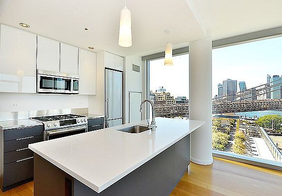 Gross rent is $7,595.00 This premier corner 2 Bedroom offers unparalleled views of the East River, Manhattan Skyline, Statue of Liberty, Empire State Building, beloved Jane's Carousel, Brooklyn Bridge and Manhattan Bridge. Enjoy gorgeous Southwestern light all day from the sweeping floor to ceiling windows. The spacious home features a large open kitchen with breakfast bar and premium appliances. Enjoy the amenities of a new apartment with the stack-able Bosch washer/ dryer, hardwood plank flooring, garbage disposal, solar shades in the living room and blackout shades in the bedroom, as well as Central Air and track LED lighting throughout. Just steps away from historic Brooklyn Bridge Park and at the epicenter of Brooklyns flourishing arts and culture community, 60 Water is a new construction rental developed and managed by Two Trees Management and designed by LEESER Architecture. The modern yet reflective faade is inspired by the buildings views of both the Manhattan and Brooklyn bridges. Light-filled apartments offer floor-to-ceiling windows, which feature elegant island kitchens, stainless appliances, dozens of outlets, and well-appointed floor plans. On the upper floors, a shared roof deck designed by the architects behind the High Line offers Manhattan-facing vistas.