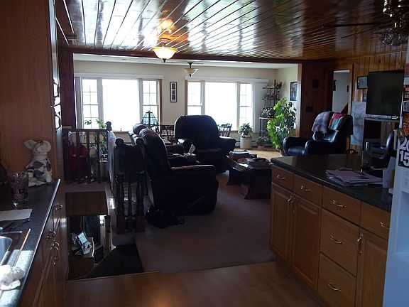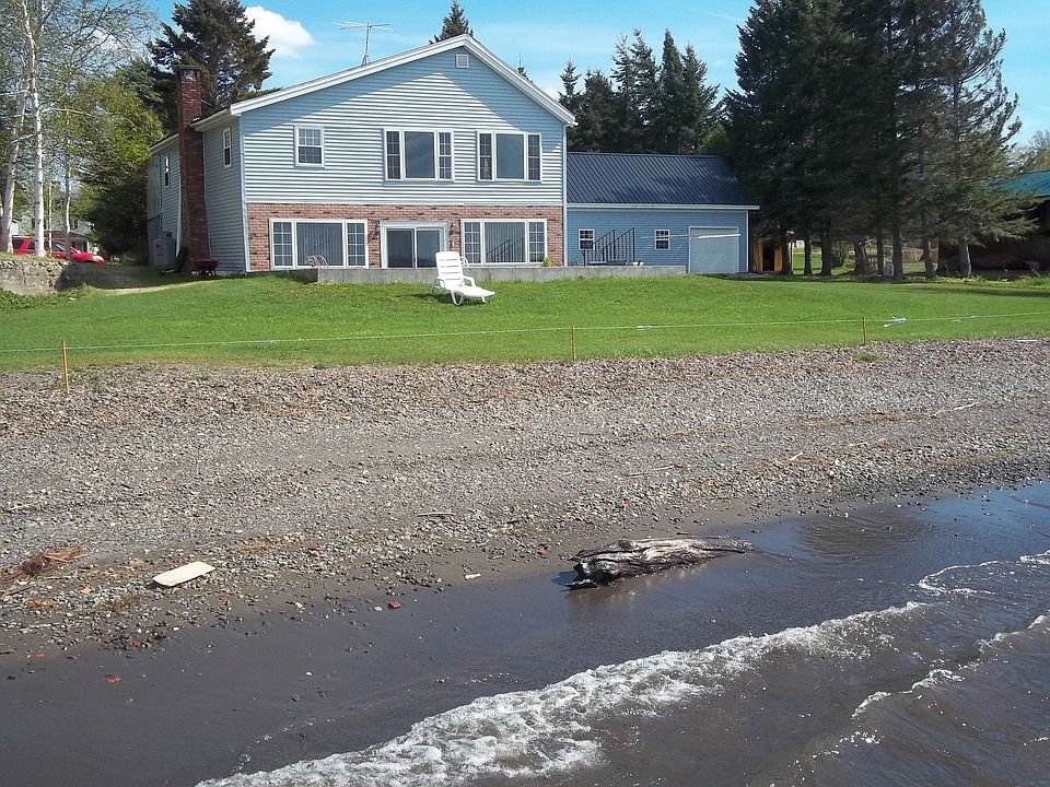 House and 2 Garages for sale at 60 West Rd, Portage Lake, Maine. Upstairs is main living area with open concept living room, dining room and kitchen with spectacular views. Full bathroom with w/d hookup and 3 bedrooms. Walk out covered porch faces roadside. The roof and railings have been recently updated (not shown in pictures yet). This house has fully finished basement great for entertaining! Open concept area with bar that seats 4+. There are 3 small rooms used to keep separate the furnace and coat storage and bathroom from the main area. Also a beautiful fireplace with gas insert. Windows and patio door across lakeside to allow for exceptional views and easy access. 2 garages, one built in 2009 and one in 2001. Both 700+ square feet and newer one has overhead storage area accessible by stairs. You will find the yards breath-taking with flower gardens and lush lawns. Paved driveway.