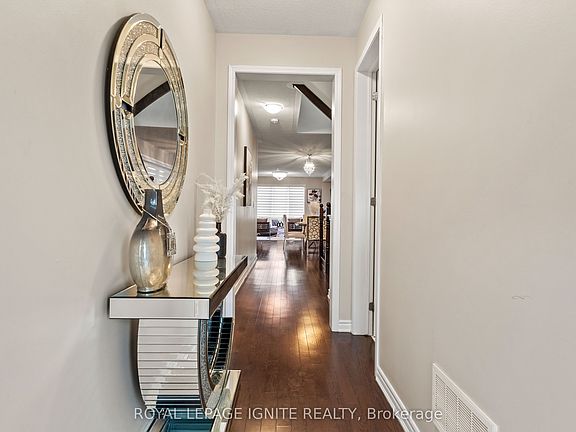 Situated in Lynde Creek, one of Whitby's most desirable neighbourhoods. This 4-bedroom detached Mattamy home combines style, comfort, and practicality. The main floor features hardwood flooring, smooth 9-foot ceilings, a bright and open-concept living area, a private den, and a well-appointed kitchen with extended cabinetry and ample storage. Upstairs, enjoy three full bathrooms, including a spacious primary ensuite, along with generously sized bedrooms for the whole family. Additional features include a main floor powder room, a cold cellar for added storage, a separate entrance to access the basement, and tasteful upgrades throughout. Close to everything you need shopping, parks, new medical center, and just minutes from Hwy 412 & 401.Ready for your family to create new memories.