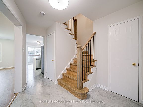 This stunningly newly renovated 2-story, 3-bedroom home has been completely transformed with modern finishes and attention to detail! The main and second floors feature brand new engineered hardwood flooring and a beautifully finished staircase. The living room and basement boast pot lights, complemented by all-new light fixtures with energy-efficient LED bulbs throughout. The kitchen has been refreshed with painted cabinets and opens to a spacious eat-in area, highlighted by large porcelain tiles from the entry to the kitchen. Both bathrooms feature engineered stone countertop vanities, a new 3-piece bath, and stylish porcelain tiles in the powder room. Smooth ceilings and fresh paint throughout the main and second floors create a bright, airy feel. Step outside to a newly built wooden deck and lush backyard with fresh sod, perfect for entertaining. Additional upgrades include a new interlock pathway to the front entry and a freshly painted asphalt driveway. Located in a great neighborhood close to schools and shopping, this move-in ready home combines modern elegance with thoughtful functionality.