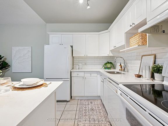Welcome to 60 Wyndham, where comfort, community, and convenience come together. Set back from the energy of downtown and surrounded by mature trees, this well-maintained residence offers a peaceful lifestyle with a true sense of belonging. Recent updates to the lobby and hallways create a bright and welcoming first impression. Inside this spacious second-floor suite, you'll find a functional layout with generous storage and the ease of in-suite laundry. The primary bedroom includes its own 3-piece ensuite with a walk-in shower, while a second bedroom and full 4-piece bath provide versatile options for guests, a home office, or hobbies. The updated open-concept kitchen, dining, and living area is thoughtfully designed for everyday living or entertaining, showcasing timeless white cabinetry, quartz countertops, and a stylish backsplash.Step outside to your private balcony and take in tranquil views of the landscaped grounds, complete with gazebo and patio an ideal spot to enjoy your morning coffee or unwind at the end of the day.Life at 60 Wyndham comes with thoughtful amenities, including a fitness room, guest suite, party room, and secure underground parking. Here, you'll discover not just a condo, but a welcoming community to enjoy for years to come.