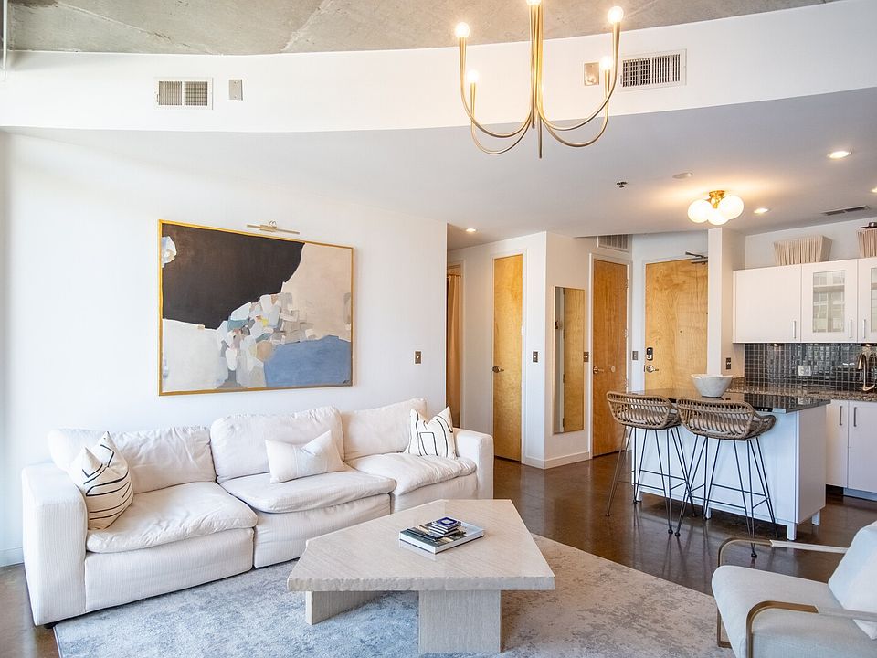 SELLING FULLY FURNISHED -- NEW HVAC -- UPDATED UNIT -- AUTO SHADES. This 1-bedroom, 1-bathroom unit in the Icon in the Gulch has been enhanced with numerous updates. The living room features floor-to-ceiling windows, allowing an abundance of natural light to fill the space. The open-concept layout seamlessly connects the living, dining, and kitchen areas. The bedroom provides a comfortable and cozy feel with auto shades and floor to ceiling custom drapes. Convenience is key with the in-unit washer and dryer. Step outside to your private balcony, offering a perfect spot to unwind while enjoying city views. This property, part of the Icon in the Gulch, provides access to a variety of amenities, including 2 refreshing pools, large gym, 24 hour concierges. Experience the perks of urban living with direct access to the vibrant Gulch and downtown Nashville.