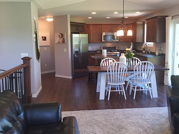 AMAZING New home in the Westwind development. This one is only 7 months old! Home features white trim/white doors 4 bedrooms, 3 full bathrooms, large Master Suite with walk in all tile shower, oversize corner soaker tub and granite counter tops, large main floor living room with vaulted ceiling, stainless steel appliances, knotty alder kitchen cupboards with the soft close feature, island with lots of storage and walk in pantry. The lower level has a home theater system with surround sound and HD projector, rough in for wet bar, large rec room great for kids. The backyard features a large patio, irrigation system and one of the best lots in Westwind, no neighbors directly behind you! Three stall oversize garage with a drain on the floor and a gas line added for future heater and the ceiling is insulate. Great location next to walking trails, the golf course, parks and the lakes. Specials do apply. Willing to work with buyer agent.