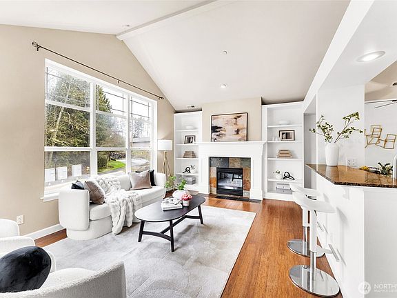 This desirable Canyon Ridge Condo features a private entrance and secure attached garage. Inside, you'll find a bright open floor plan with vaulted ceilings, large windows, and skylights that flood the space with natural light. Beautiful hardwood floors, a cozy gas fireplace with custom built-ins, and a kitchen with a granite dining bar, stainless gas range, and included appliances add charm and functionality. The spacious master suite offers a peaceful retreat, and the private deck provides stunning views. Private access to Shelton View Forest trails right from the gate, 3 min walking. Prime Canyon Park location close to freeways, shopping, and Northshore Schools, this condo is the perfect place to call home!