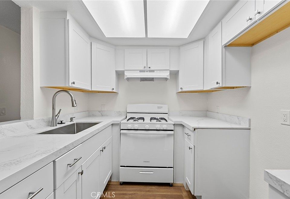 Welcome to this beautifully remodeled condominium! This spacious 2 bedroom, 1 bath located on the 1st floor. Unit features a completely updated kitchen with new cabinets, countertops, sink, faucet, stove, and new Laminate flooring. The dining and living areas also showcase new laminate flooring. Step through the new installed patio sliding door to enjoy your private outdoor area. The bedrooms are generously sized, featuring new carpet and baseboards for added comfort. The bathroom has been fully upgraded with a stylish new 2 cabinets with vanity area, a mirror, and new laminate flooring. As part of a gated community, you'll have access to two pools and two clubhouses, along with assigned parking for your convenience. Plus, you’re within walking distance of downtown Santa Ana, where you can explore a variety of restaurants and shopping options. This unit is truly a must see don't miss out on this fantastic opportunity!