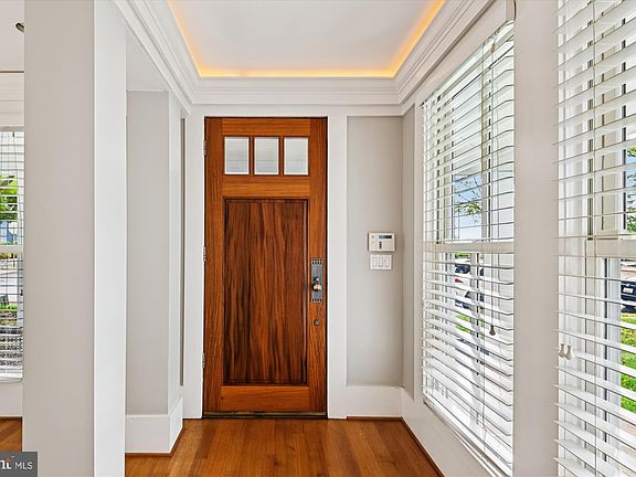 Welcome to Eastport living at its finest—where timeless coastal design meets understated luxury just one block from the water. Perfectly situated on the highly sought Eastport Pennisula, this elegant two-story home blends craftsmanship, comfort, and walkable charm in one of Annapolis’s most desirable neighborhoods. Inside, soaring ceilings, coffered detailing, and recessed lighting tucked behind crown molding create a warm, sophisticated ambiance. The open-concept kitchen—with gorgeous Cambria Quartz counters, GE Café appliances, an expansive bar and dining area—flows seamlessly into the living room for easy entertaining. Extra-wide flat-board trim, rich hardwood floors, and designer finishes throughout reflect thoughtful quality at every turn. Upstairs, each bedroom enjoys a private ensuite bath and California Closets storage. The primary suite and a second bedroom open to private verandas with marina and sailboat-mast views. Two fireplaces—one wood-burning in the family room and one gas in the primary suite—add warmth and ambiance. The home is also equipped with a Bose whole-house sound system and central audio hub, all conveying. Outdoor living is equally inviting: a front porch perfect for greeting neighbors, and a private fenced rear veranda and brick patio ideal for gatherings or summer crab feasts, tucked between the home and the detached two-car garage—a rare Eastport feature. As an added bonus, the garage is equipped with a Level 2 EV Charging Station. Located adjacent to Safe Harbor Marina (formerly Mears Marina, Swim and Tennis Club) and close to Eastport Democratic Club (social not political club) as well as Sixth Street Beach on Back Creek. Launch a kayak or paddleboard steps from your home or walk just blocks to Annapolis and Eastport Yacht Clubs, Severn Sailing Association and countless local marinas, restaurants, and coffee shops. Come see what the Eastport Lifestyle is all about!