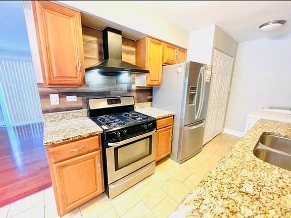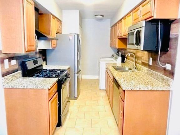 Modern stainless-steel kitchenNew refrigeratorFull-size washer and dryerRefreshed interior