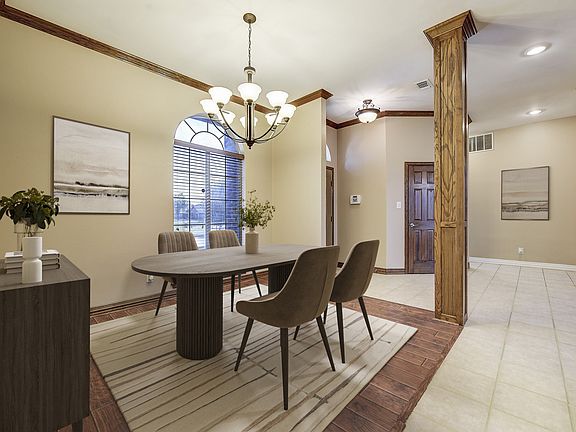 This charming property offers incredible curb appeal with a circular driveway, an oversized garage, and mature trees out front. Inside, you’ll find two spacious living areas—one featuring a stunning stone gas fireplace. Upon entry, you’re welcomed by a formal dining room and a secondary living space, both enhanced with crown molding and large windows that fill the home with natural light.