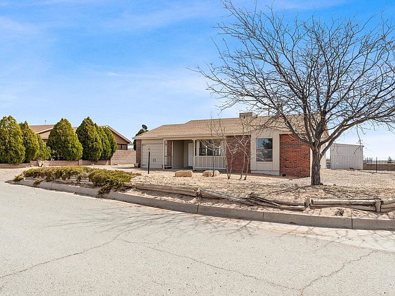 FABULOUS UPDATED GEM in lovely Rio Rancho. Upgraded with refreshed wood tile flooring, modern countertops, stylish bathroom sinks, fresh paint and lighting inside, as well as recently redone paint and siding on the outside! This charming 3 bedroom/2 bathroom home has a quaint yet roomy kitchen complete with a farm sink, perfect for whipping up delicious meals for family and friends. The bedrooms are cozy with plush carpeting, and the master bedroom comes with a spacious walk-in closet. Step outside onto the covered porch and take in the beauty of the walled-in backyard with mature shade trees. Need storage space? This property also comes with outdoor storage, making it perfect for those who love to stay organized. Don't miss out on the opportunity to make this house yours! Call ASAP!