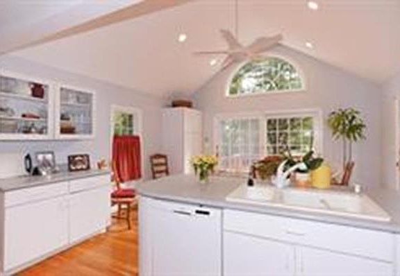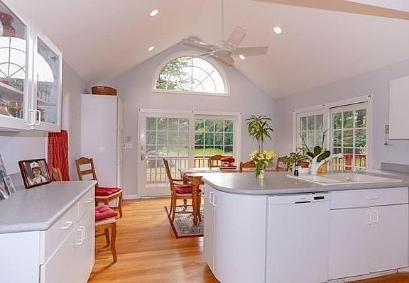 - Kit Dscrp: Main Level, Dining Area, Ceiling Fan(s), Flooring - Hardwood, Countertops - Stone/Granite/Solid, Deck - Exterior, Skylight, Ceiling - Cathedral, Breakfast Bar / Nook, Kitchen Island, Recessed Lighting, Exterior Access, Peninsula