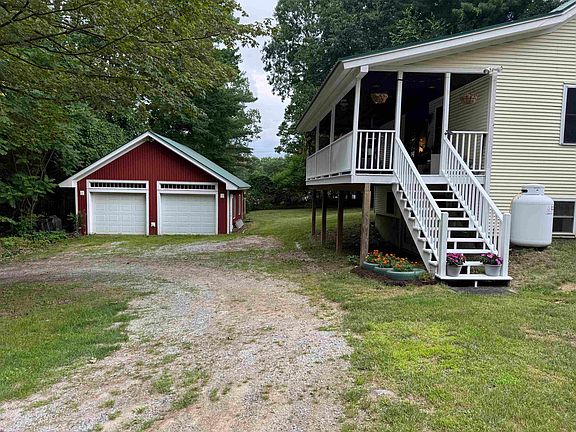 Charming Forest Cottage Tucked in from a quiet dirt road, this warm and welcoming cottage offers a peaceful escape surrounded by nature. Set on 2.90 acres of wooded privacy, it’s the perfect spot for those who crave quiet mornings, starry nights, and room to breathe. Inside, you’ll find 1 comfortable bedroom, a cozy sleeping loft, a versatile bonus room, and 2 bathrooms. The heart of the home is the living area, where a beautiful fieldstone fireplace and natural wood cathedral ceiling bring a sense of comfort and character. The modern kitchen is thoughtfully updated—offering all the functionality you need while keeping the charm intact. Step outside and enjoy the natural surroundings, with plenty of space for gardening, playing, entertaining, or relaxing on the front porch. A mature peach tree adds a sweet touch just steps from the door, while grapevines at the edge of the property offer seasonal harvests and a touch of rustic charm. A detached two-car garage offers generous storage, and there's even an attached coop—ready for chickens or other feathered companions. Whether you're looking for a full-time home, a weekend retreat, or a place to slow down and enjoy the simple things, this forest cottage invites you to settle in and make it your own.