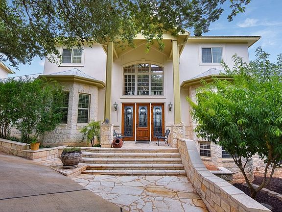 Welcome to Blanco River Ranch! Stunning home west of The Corridor high above the Blanco River. 3.5 acre private setting in the gated Blanco River Ranch subdivision. Centrally located near San Marcus between Austin & San Antonio just five miles from the Texas State Stadium. This gorgeous home includes a 4,646 square foot home/w separate guest quarters. Both sport magnificent breezy vista views high above the Blanco River from Ipe decks & balconies surrounding. Private riverbank access. Master suite located on the first floor. Vaulted ceilings, large living areas on the main & upper living areas with French doors, two huge white stone fireplaces, two dining areas, a true Chef's kitchen, updated appliances, & granite countertops. Tons of storage throughout & an attached two car garage on the main house. The guest quarters above the three car garage has a large living area, full bath, & kitchen. Entertainer's delight with pool, hot tub, decks! Relaxing views & quiet serenity!