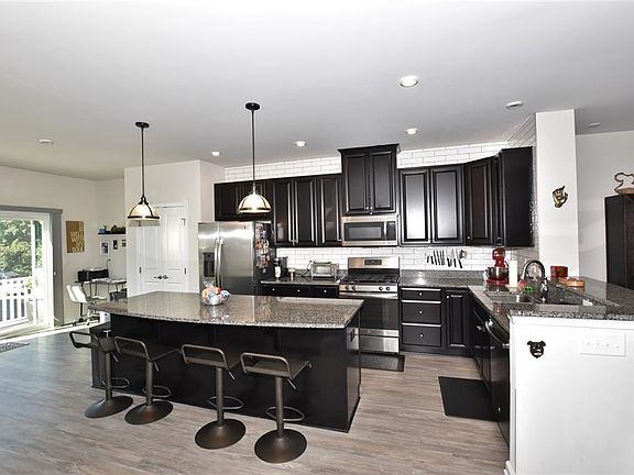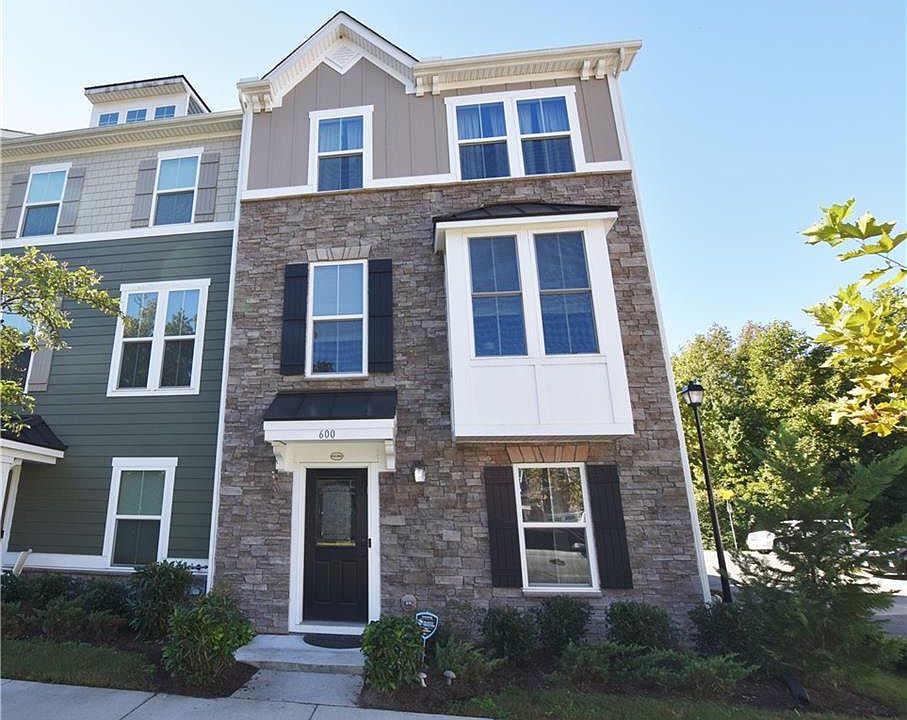 New stainless energy efficiency appliances & 20 ft granite island. Gas professional cooking range, ringer alarm, security cameras & new nest thermostat. Family room wired for surround sound. Two car garage & end unit! New flooring & backsplash. Custom window treatments. Soaking tub, tray ceilings & walk in closet in master. Neutral colors throughout. Updated light fixtures. Washer & dryer convey! Second bedroom has walk in closet too! First floor has huge storage closet, perfect for 4th bedroom! HVAC & venting recently cleaned. Clubhouse & pool! Beautiful exterior stone work. Private balcony & so much more! This is a MUST see!