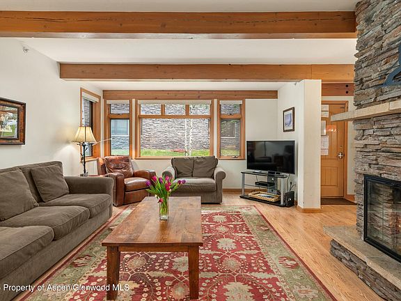 A rare 3-bedroom, 3-bathroom remodeled Aspenwood residence with 1,608 square feet all on one level! This is not your typical Aspenwood floor plan. There's 500 sq ft of added new space, creating a unique, open, and spacious layout. Located just steps from the slopes and Snowmass Mall, with convenient parking nearby. Large windows throughout let in plenty of Colorado sunshine. The kitchen features granite countertops, a Sub-Zero refrigerator, a Jenn-Air cooktop, and a convection oven. There are stacked stone gas fireplaces in the living room and master bedroom. The master bath offers a Kohler jetted tub and shower, while the guest master bath includes a steam shower. A spacious laundry room completes this home. You are steps away from the large pool, two hot tubs, steam room, sauna, and workout facility. There is a large owner storage closet just down the stairs from the front door to store your skis, bicycles, and/or lock away your personal items when renting. HOA fees are among the lowest in Snowmass Village for a 3-bedroom ski-access property. Excellent short-term rental income. The Aspenwood allows any short-term management, giving you the ability to choose the best fit for you. Truly a unique opportunity.