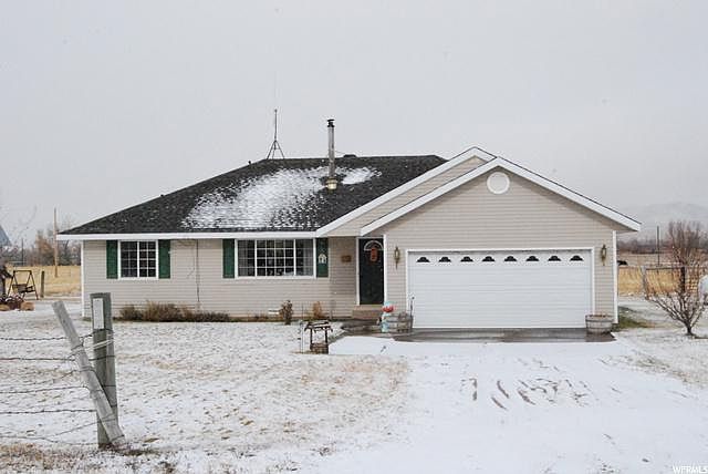 SINGLE LEVEL LIVING!!!! Hot on the Market this 1400 Square foot , 3 bed 2.5 bath home with a 2 car garage, 40X30 Garden Garage/ Workshop all on 4.32 Acres with 1 water share. Located 20 minutes from Beautiful Bear Lake. Call today to schedule an apt to see it. Buyer to verify square footage.