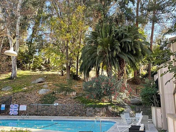 Welcome to this lovely Canyon Crest, one bedroom one bathroom, upper corner condo!Situated in one of Riverside's most desirable neighborhoods, this unit contains many desirable features including a spacious and brightly lit bedroom with double doors and two large closets. An open floor plan, vaulted ceilings in both the living and dining rooms, and a kitchen complete with stainless steel appliances are only the beginning as the balcony also boasts a view of the pool and serene mountainside. Conveniently located minutes away from UC Riverside, Canyon Crest Town Center and Sycamore Canyon Wilderness Park with access to the 215, 60 and 91 freeways. Amenities include a bbq/picnic area and pool. Landscaping, water, sewer and trash are included. It's a family-friendly community and a wonderful space to call home!