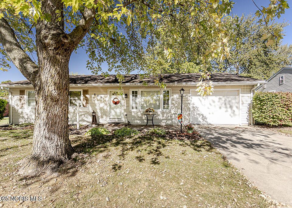 Move-in ready! Adorable and well-maintained 3-bedroom, 1-bath ranch home with an attached 1-car garage located in a quiet Findlay neighborhood. This charming home features an inviting sitting room with views of the spacious fenced backyard—perfect for relaxing or entertaining. The eat-in kitchen boasts stainless steel appliances, granite countertops, and a trendy tile backsplash, offering a modern touch to this cozy space. The updated bathroom design adds a fresh feel, while central air and furnace units (both less than five years old) ensure year-round comfort. Outdoor living is a highlight, with a stamped concrete front patio, a paver patio in the back, and a large 12x16 shed providing plenty of storage. The beautifully landscaped yard and great curb appeal make this home truly move-in ready!