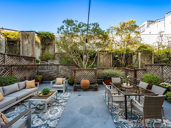 In the heart of North Beach, this refined residence embodies effortless indoor-outdoor living. The open-concept layout connects the living, dining, and kitchen areas in one inviting flow, opening through sliding glass doors to a private patio, a rare urban retreat ideal for morning coffee, alfresco dining, or evening gatherings under the city lights. Sunlight pours in, highlighting an rustic brick wall that adds timeless warmth and character to the space. The serene primary bedroom offers a peaceful escape with generous storage, while the spacious second bedroom provides comfort and privacy, perfect for guests, a home office, or creative retreat. A second full bath, in-unit laundry, garage parking + additional storage offer everyday convenience. Residents also enjoy access to a shared rooftop deck with sweeping city views, an inspiring spot for sunset gatherings, watching the Blue Angels, or just to enjoy the quiet moments above the buzz of North Beach. Only a stones throw from Washington Square Park, Joe DiMaggio Playground, and all of the most beloved cafes, restaurants, and boutique that North Beach has to offer.