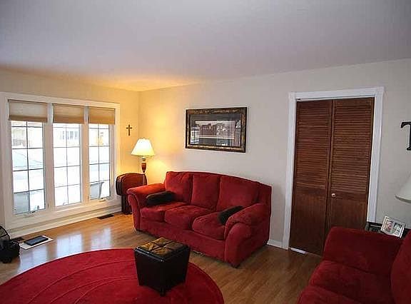 Great curb appeal in this corner lot home with many upgrades. Large fenced in yard with 2 car detached garage and Deck. Updated Kitchen with Cherry cabinets w/tile backsplash and SS appliances. Laminate flooring in Kitchen, Eating, and living room. Both bathrooms have been Nicely updated. All new Windows. Separate family room with ceiling fan. All fixtures have been updated. Ceiling fan in master bath. Shows well.