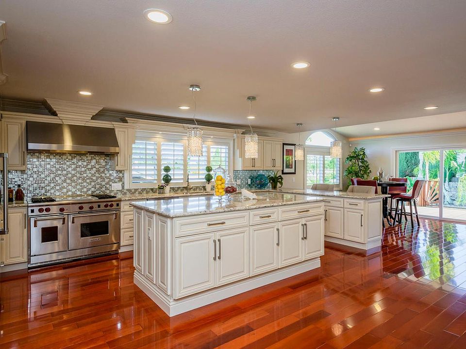 Step into this fine Semi Custom home and you will see its high quality and excellent floor plan! Newly expanded and remodeled, this home caters to those that want simplicity and elegance coupled with a modern style. Heavy Tuscany Front Doors open into a Spacious Living Room that looks into a gorgeous rear yard with brand new Redwood decking and a sparkling pool. Adjacent from there is your formal family room and formal dining room with this great room floor plan that offers so many entertainment possibilities! Gourmet Kitchen offers antique style French cabinetry with soft close drawers. Accent lighting and crystal pendants are featured in this kitchen. Not to mention, the 48 inch wolf range 4 burner featuring a French burner with a double oven for all of your cooking needs! Other amenities include a 48 inch Thermador fridge , Bosch Dishwasher, Underneath cabinet lighting, as well as a pantry! Large Master Suite offers vaulted ceilings, accent lighting, and dual paned milgard sliding doors to the rear yard and deck. Richly appointed master bath offers a his and hers vanities with marble counters, porcelain tile floors, custom tile showers, frameless shower door featuring ½ inch glass, and Jacuzzi tub. Let’s not ignore the custom walk in master closet featuring cherry wood drawers and shelves.