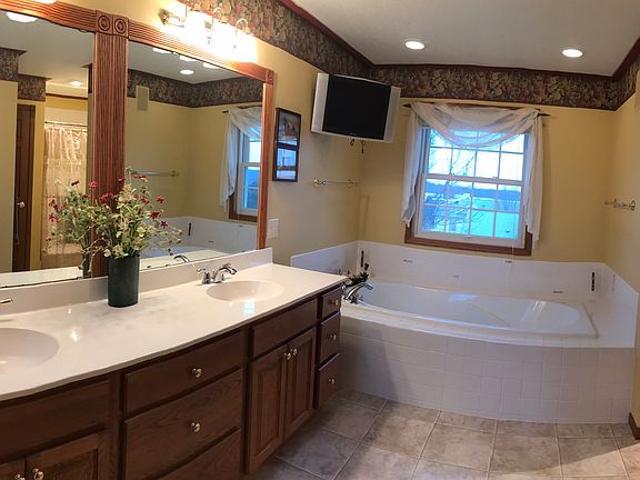 If you like extras then you will love this amazing 5 bedroom 2-story home. When you visit, you will see and feel nothing but quality from the bottom to the top. The kitchen sports hickory cabinets, corian counter tops, pantry, top of the line appliances and include first floor laundry. The dining area has large windows and a door than leads out to the wrap around porch. The living room and kitchen with its open floor plan is the perfect meet and greet spot featuring grand windows and fireplace. The master bedroom suite with separate shower, jaccuzi tub, double vanity and two walk-in closets is awesome. The lower level includes a family room with wet bar, large bedroom, exercise area and storage room. There is storage galore in this house! There are four bedrooms situated on the second level, a perfect arrangement for growing families. The four season porch is a quaint get away to relax with a cedar ceiling and wrap around windows that overlooks a professionally landscaped yard, patio and fire ring. The white, vinyl fencing adds to the curb appeal and a great place for your kids or critters to play. The garage space is a dream come true with an over-sized attached, heated double garage. Also included is an over-sized de-attached garage with a wide stairway to a loft, a serious man cave or workshop. There is also endless driveway space for your parking needs. This house is a turn key must see!