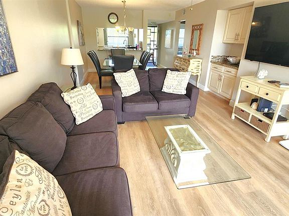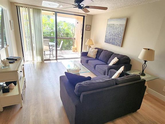 Super cozy off seasonal 2/2 furnished rental available through Dec 2025. 30 day minimum rent. Rent includes water, cable, wifi and a monthly allowance for electric. Walk to shopping and entertainment. 2 pools, fitness, hot tub, next to sport parks, minutes from downtown and beaches.